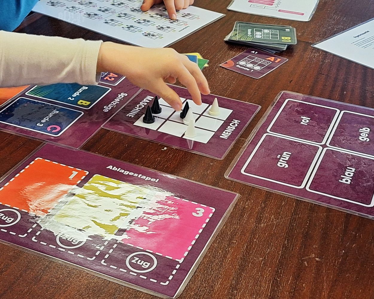 Zu Beginn spielen wir mit den Schülern, um sie ins Thema inhaaltlich einzustimmen und den Wissens- und Kenntnisstand anzugleichen. Sie erleben hierbei, wie ein Computer lernt und wie er daraufhin funktioniert.