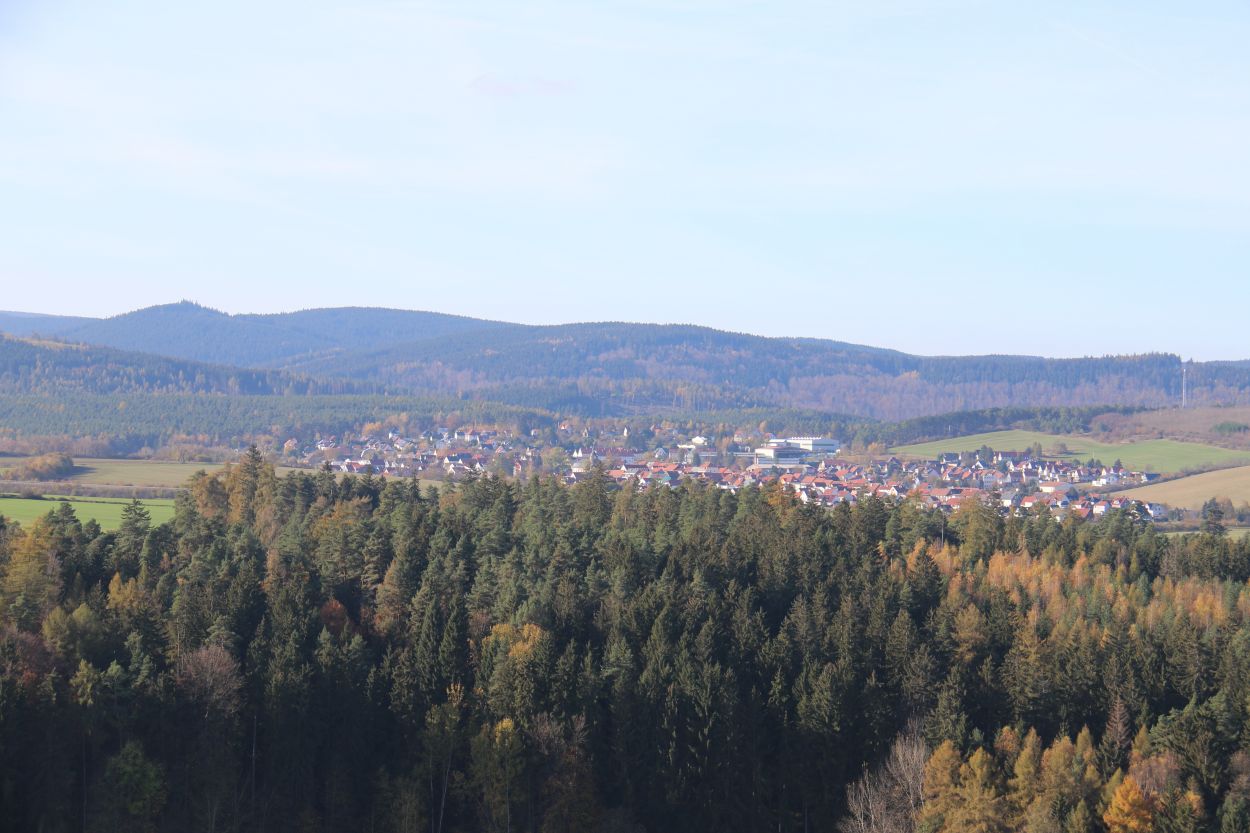 An einem sehr schönen Aussichtspunkt lernen die Kinder die Sage von den Zwergen aus den Kammerlöchern kennen und finden den Rückweg über Angelroda, wo sie früher gewesen sein sollen.