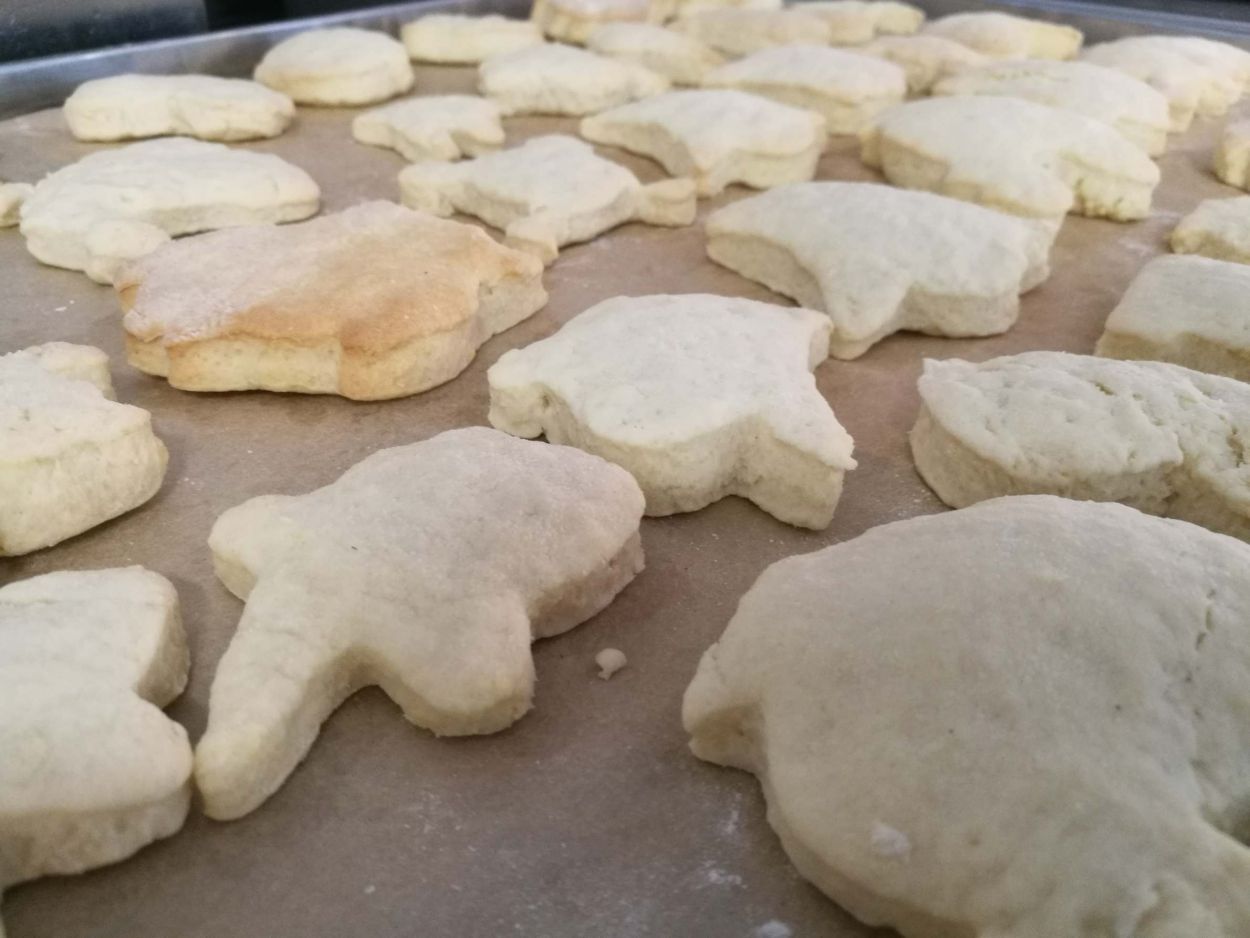 Die Plätzchen werden in selbstgestalteten Tüten mit nach Hause genommen. Sie brauchen nur Back- oder Kochschürzen einpacken und kommen.