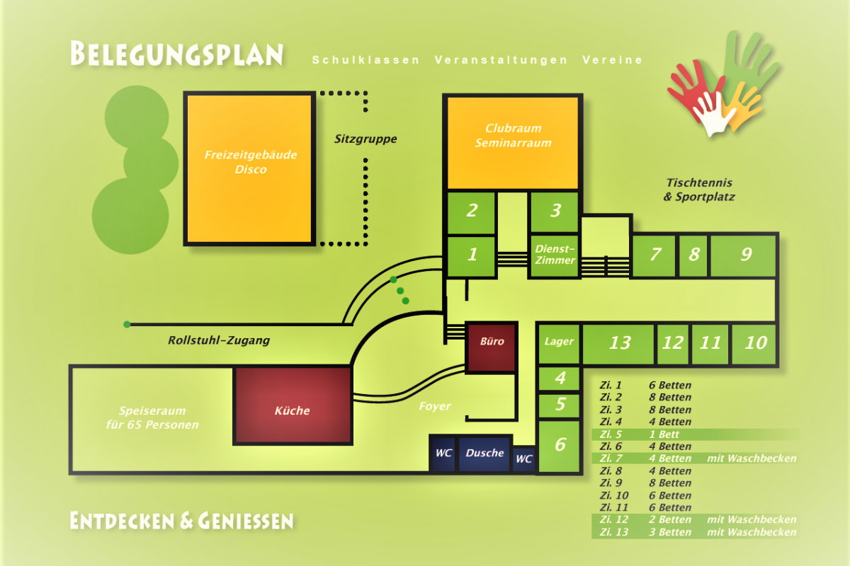 In erster Linie sind wir als Schullandheim natürlich eine Gruppenunterkunft zur Kinder- und Jugendförderung und somit eine Herberge für Schulklassen und Vereine, die hier einen Schullandheimaufenthalt durchfüren möchten.